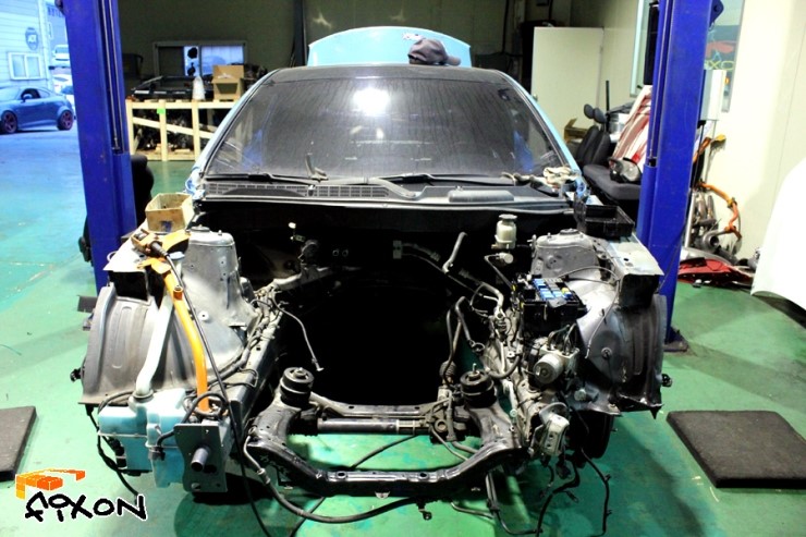 좌,우 도어를 탈거하여 제네시스 쿠페인지 알아보기가 어려운 모습입니다.