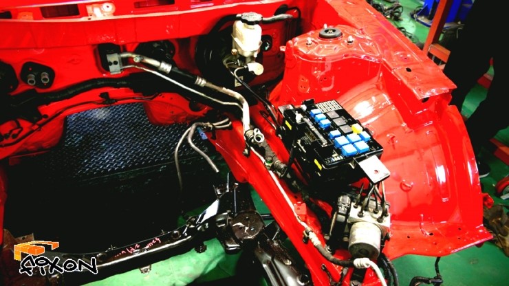 엔진룸 순정 부품 조립은 어느정도 마무리가 된 모습입니다.
